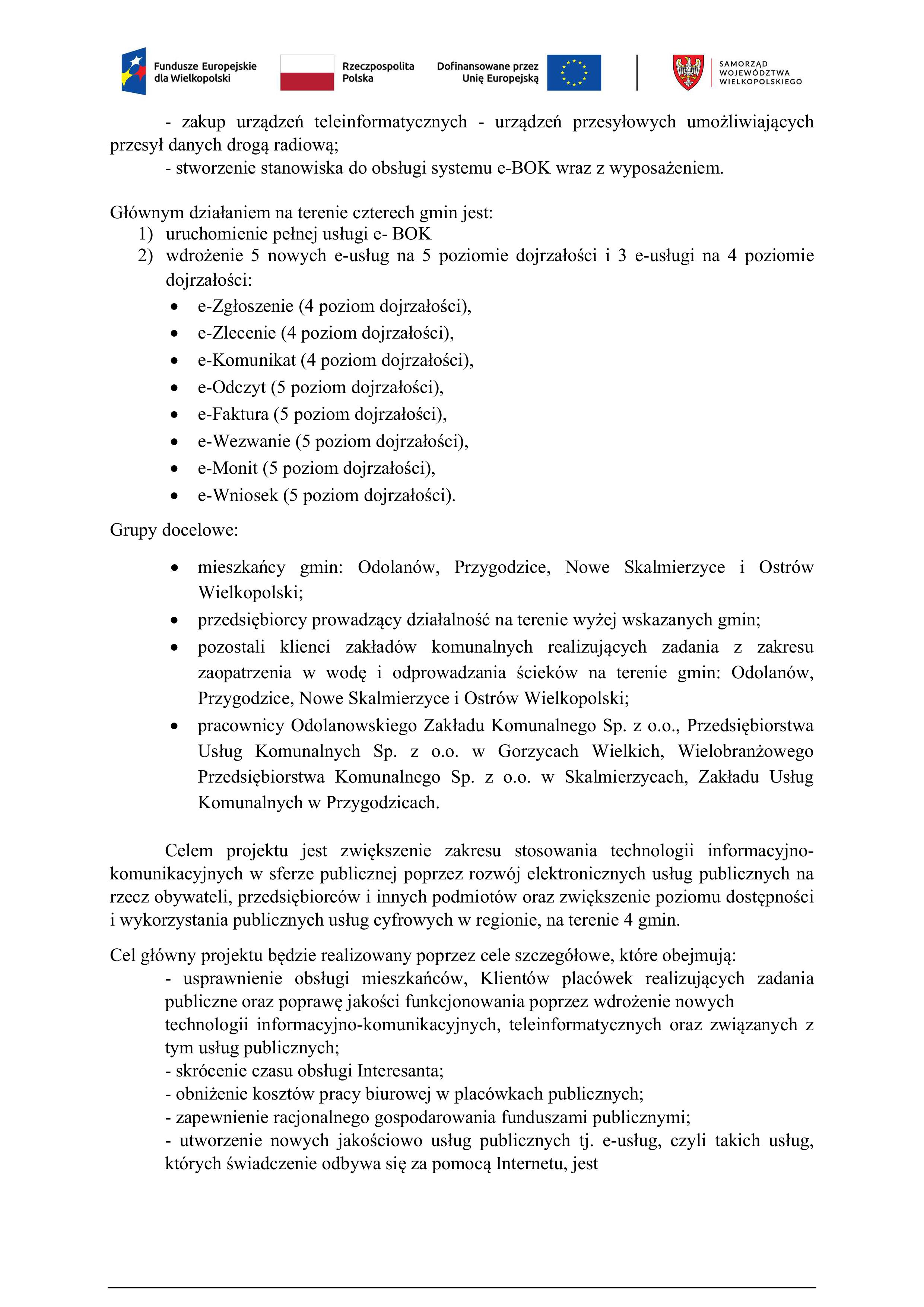 „Rozwój elektronicznych usług publicznych w zakresie gospodarki komunalnej na terenie gmin: Odolanów, Przygodzice, Nowe Skalmierzyce i Ostrów Wielkopolski”